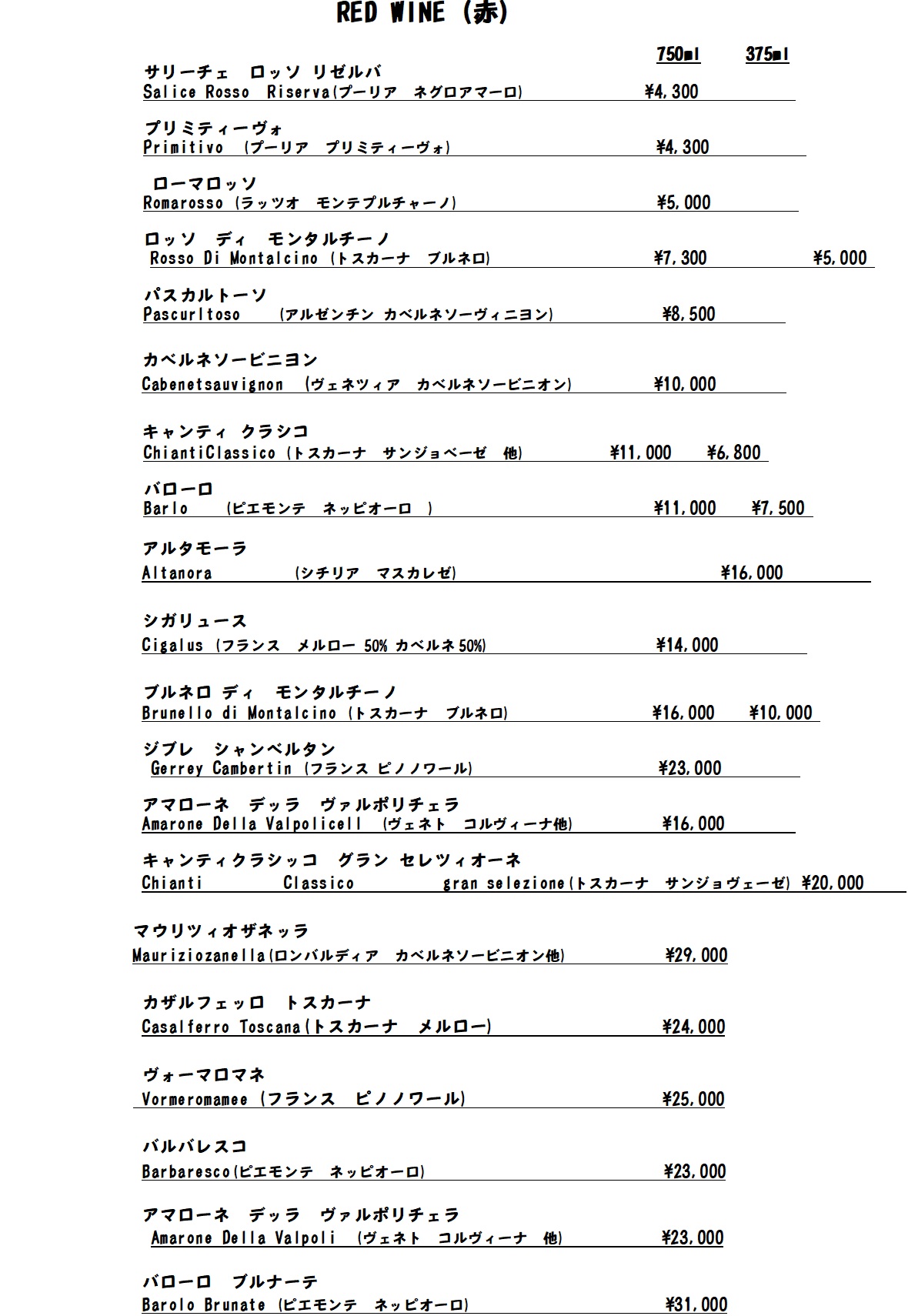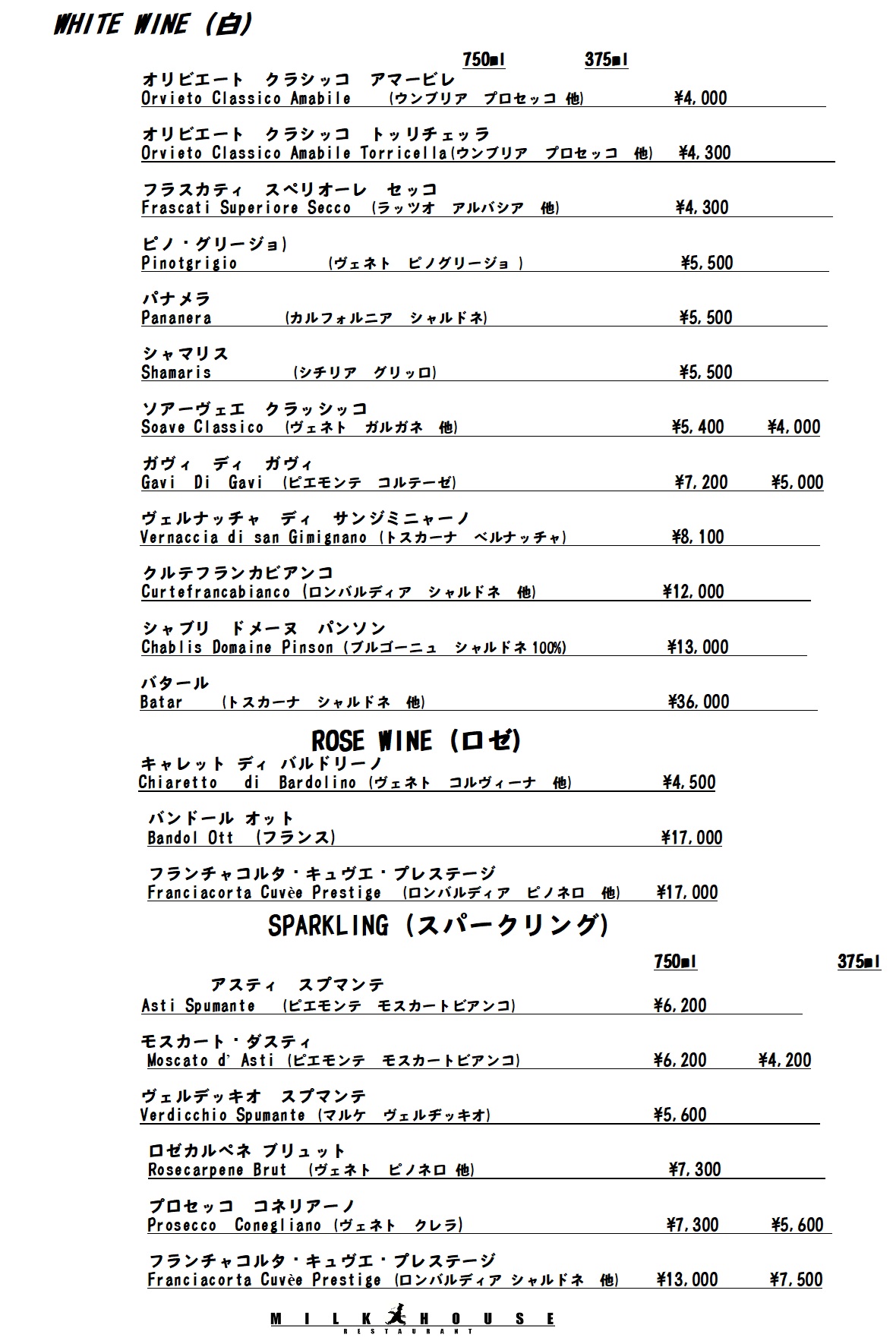 各種グラスワイン黒板を見てください
